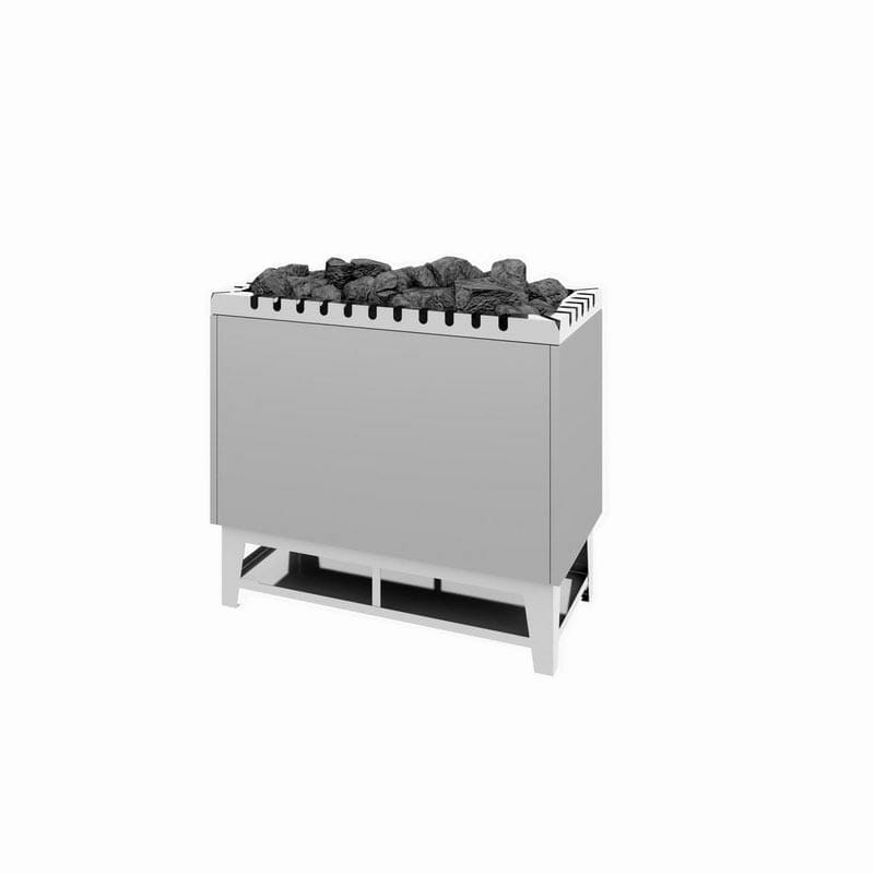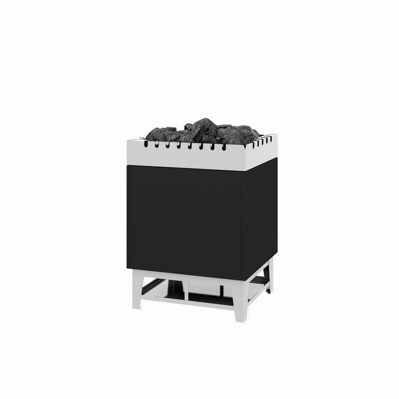 Elektroofen für Sauna, gewerblich, hochwertig. Standmodell Typ 64 Steinkorb-Kopfrahmen, Untergestell und Steineinsatz aus Edelstahl. Heizleistung anpassbar.
