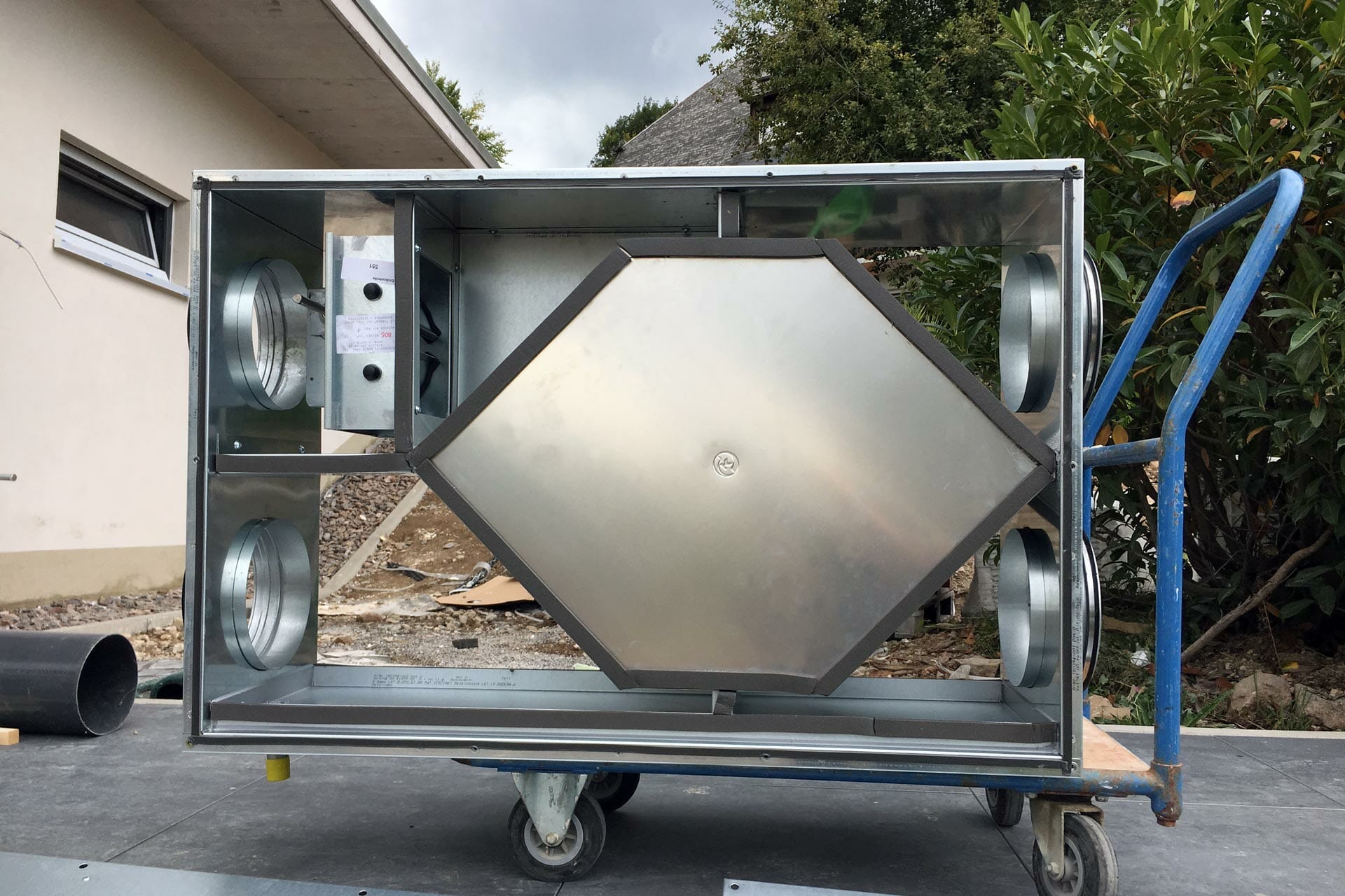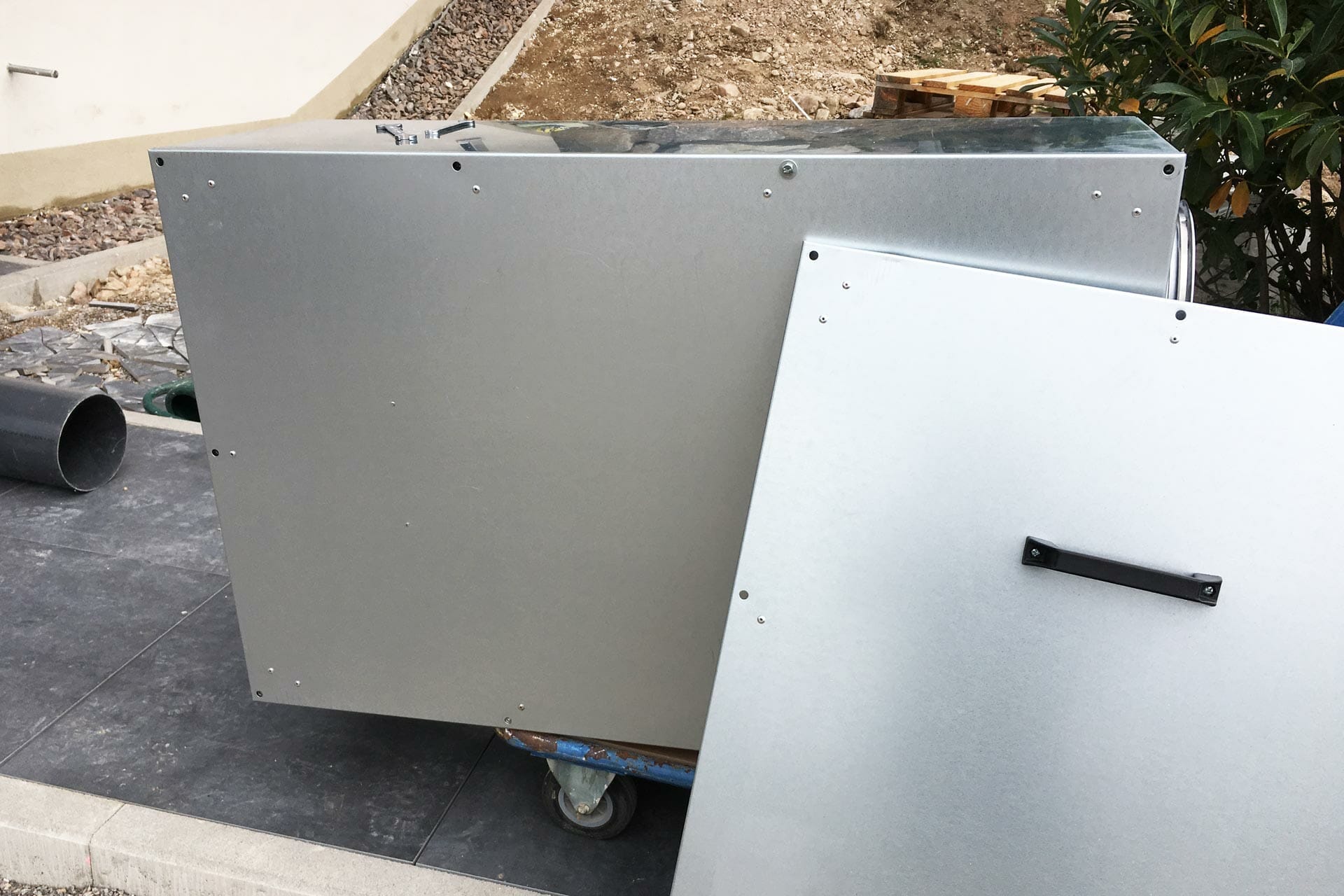 Der Wärmeüberträger wird in Boxen aus robustem, verzinktem 1mm starkem Stahlblech eingebaut. Er besteht aus einer zweiwandigen Box aus besteht aus komplett korrosionsbeständigem Aluminium, zwischen denen eine 22mm starke PUR-Dämmung platziert ist.