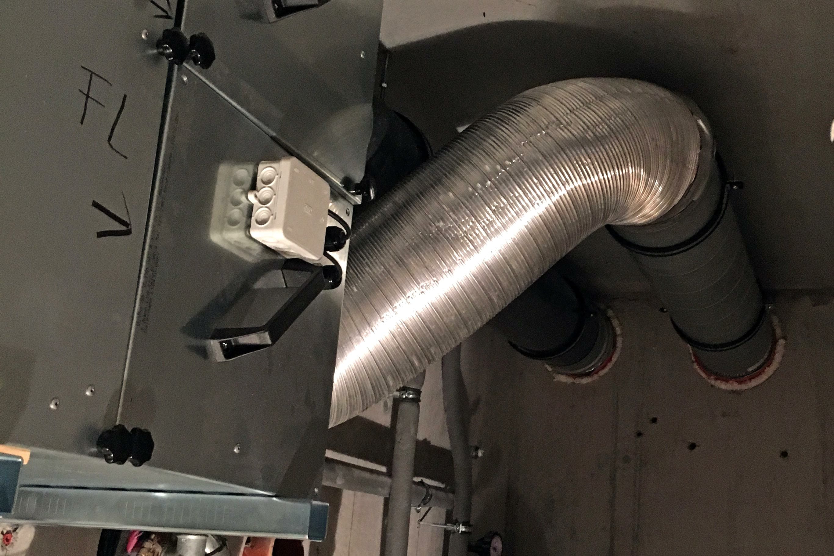 Die flexiblen Anschlussstutzen bestehen beidseitig aus zwei Steckverbindernippeln, die aus verzinktem Stahlblech mit Gummilippendichtungen gefertigt sind. Durch zwei Schlauchschellen wird der flexible Schlauch aus Gewebetuch mit den Steckverbindernippeln verbunden. Die Verbindung wird zusätzlich mit Klebeband abgedichtet.