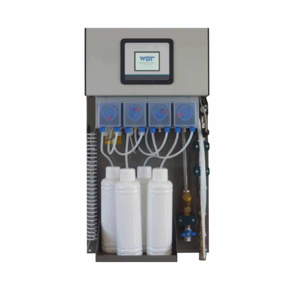 „Die Bedienung erfolgt über ein 3,2“ full color Touch-Display. Außer den Standard Einstellmöglichkeiten wie Wassermenge, Duftintensität und Aufgusszeiten bietet die Steuerung noch viele weitere einstellbare Parameter, z. B.: unterschiedliche Duftstoffe mit individuellen Intensitäten. Des Weiteren kann eine Aufgussvoranmeldung angeschlossen werden und der Aufguss kann von Licht oder Soundeffekten umrahmt werden. Das System kann bei Bedarf ein Signal an die Saunasteuerung zum Hochheizen des Saunaofens vor dem Aufguss senden.“ WDT