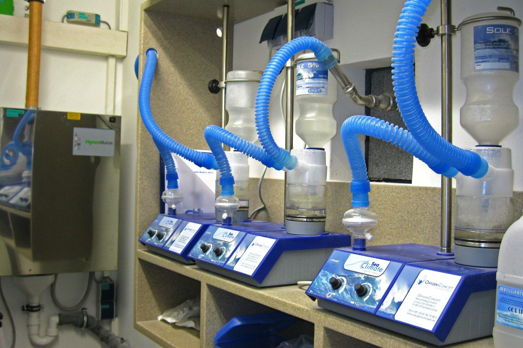 Der SeaClimate Ultraschallvernebler erzeugt einen trockenen und lungengängigen Solenebel.