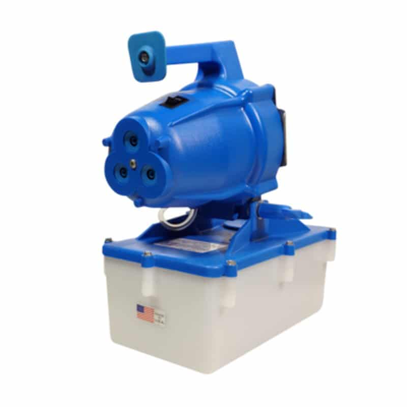 Mit dem Hurricane kann man große Fläschen und Räume schnell und gründlich desinfizieren. Einfach eines der natürlichen Flächendesinfektionsmittel einfüllen, anschalten und den Nebel auf die Fläche strahlen. Da man nicht von Hand nachwischen muss ist er optimal für den Einsatz in großen Räumen, Pferdeboxen, Anhängern etc. geeignet. Zusätzlich lassen sich mit den natürlichen (und 100% biologisch abbaubaren) Desinfektionsmittel auch Gerüche entfernen.